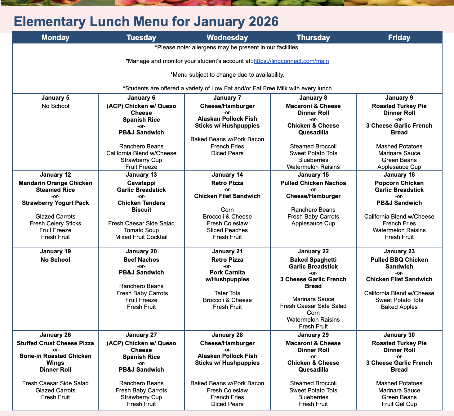 January Lunch Menu